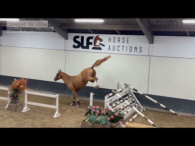 Carapaz de Jolie Z is a son of two giants in sport and breeding: Casall and For Pleasure. This beautifully built four-year-old gelding stands out with his elegant type and expressive presence. He moves easily and correctly, showing plenty of natural balance. Over the jumps he is remarkably consistent, giving a very mature impression for his age. As the fences rise, his strength and scope become increasingly visible.